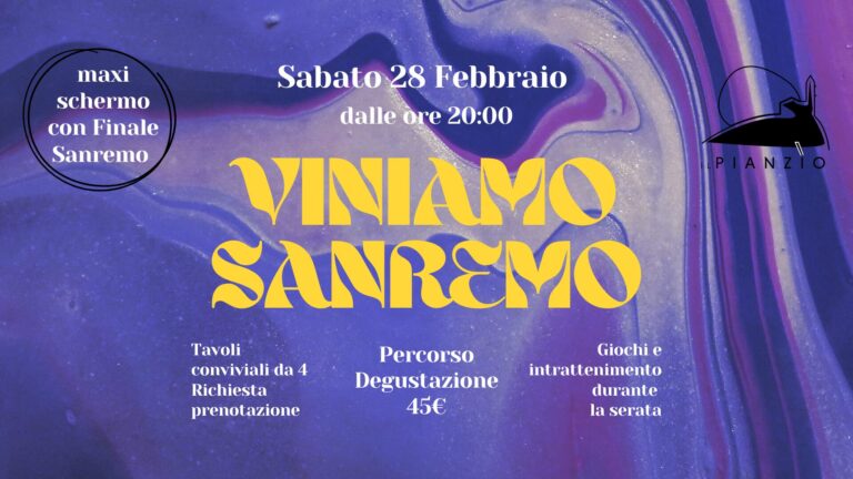 Vivi la finale di Sanremo al Pianzio, una serata speciale dove vino, convivialità e la grande musica italiana si incontrano.